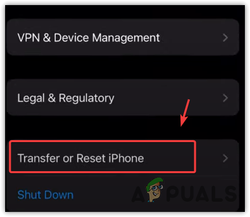 - Swipe down to the bottom and tap Transfer or Reset iPhone.