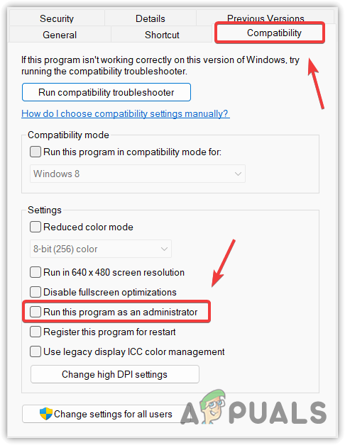 - Then, go to Compatibility. Here tick Run this program as an administrator.