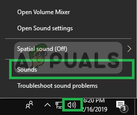 - Right-Click on the Sound icon and then on Sounds
