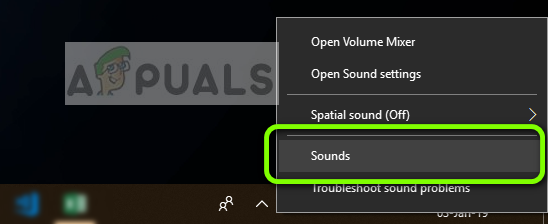 - Locate the sound icon present at your taskbar. Right-click on it and select Sounds.
