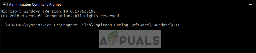 - Once in the command prompt, execute the following command so we can locate the G933 Firmware Update Utility.
