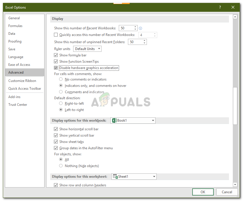 - Microsoft Excel settings: The last thing would be your Microsoft Excel settings. This includes DDE, hardware acceleration, etc. Such options usually cause issues, however, they can be easily dealt with.