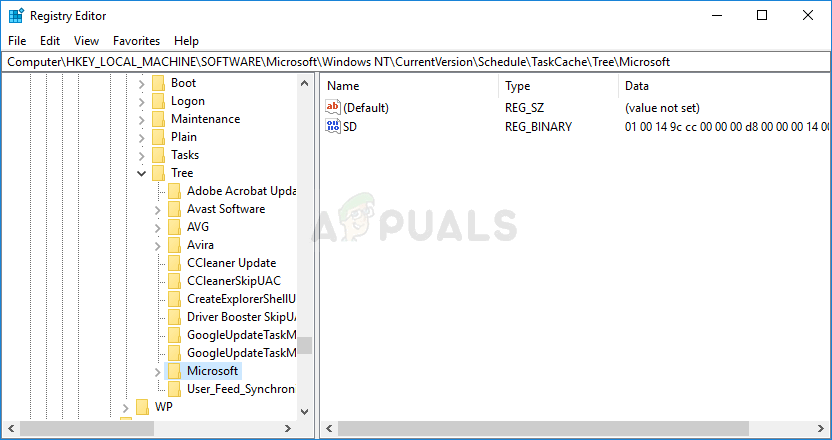 This method should be tried out only after you have tried to resolve the problem using Solution 1 and it has failed to work. Some users complained that the method above didn’t help and they only managed to resolve the problem by deleting a certain registry entry related to Task Scheduler and Microsoft Office. Also, sometimes there is no Office folder in Task Scheduler but the folder is available in registry. Check it out below!