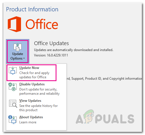 Another way that you can resolve the issue is to update your Office 365 installation. This can be really helpful if you are running an obsolete version of Office 365. As it turns out, the crashing problem was a known problem and it was addressed in one of the updates that were released. Therefore, if your issue is being caused by an outdated installation, installing Office 365 is the best way to resolve the issue. You can update Office really easily, just follow the instructions down below to do so.