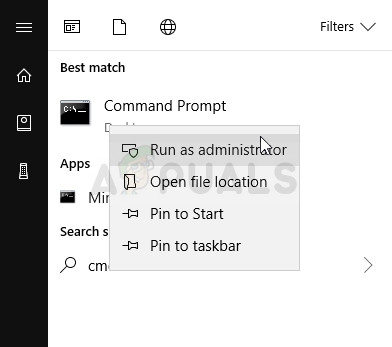 - Search for “Command Prompt” either right in the Start menu or by tapping the search button right next to it. Right-click on the first result which appears at the top and select the “Run as administrator” option.