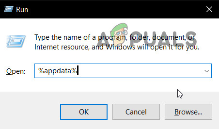 - Press Windows + R, type “%appdata%” in the dialogue box and press Enter.