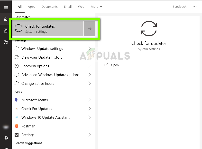 - Press Windows + S, type “update” in the dialogue box, and open the application.