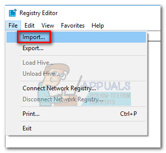 - In Registry Editor, go to File (in the ribbon bar) and choose Import. Then, navigate to the location where you saved the registry backup and click Open.