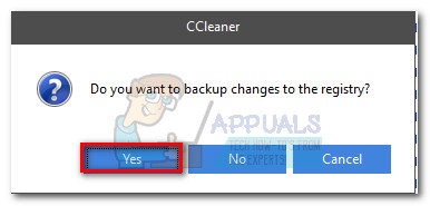 - You’ll then be asked if you want to backup the registry before making changes to it. Hit Yes at the prompt.