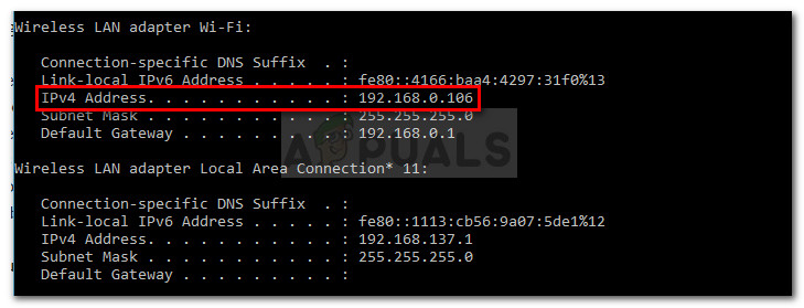Note: Your router model might have different default credentials. In this case, do an online search with the query ” *router model* + default login credentials” and you should be able to discover the default values. - Next, you’ll need to discover the IP address of the computer or console that is running the game. On Windows, you can do this easily by following Step 1 and discovering the IP under IPv4 Adress. On Xbox One, you can find the IP address in Settings > Network > Advanced Settings. On PS4, go to Settings > Network > View Connection Status.