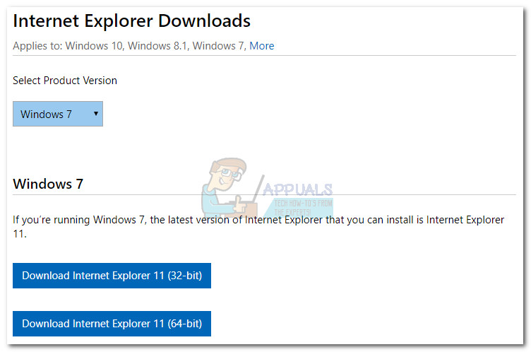 Note: Keep in mind that if you’re on Windows 7 or newer, you won’t be able to downgrade all the way back to IE 6. You can only revert back to Internet Explorer 8. If that’s the case, see if the incompatibility problems related to the legacy application still persist after the downgrade. If they do, follow Method 1 again to update to the latest IE version, then move over to the method below.