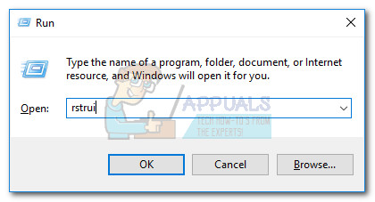 - Press Windows key + R to open a Run command. Type rstrui and hit Enter to open System Restore.
