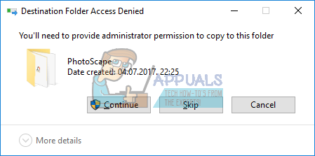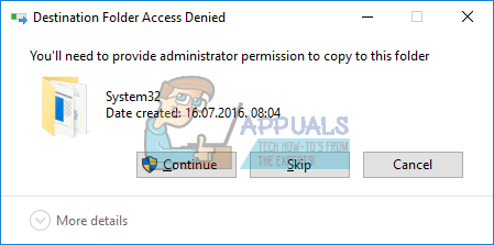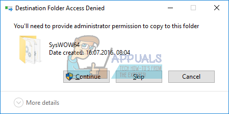 - You will need to provide administrator permission to copy DLL file to this location by clicking Continue