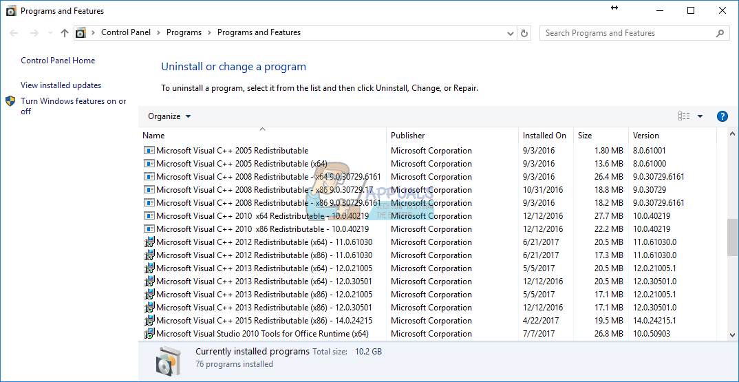 - Check which version of Microsoft Visual C++ you are using. In our example there is three versions including Microsoft Visual C++ 2005, 2012 and 2015. We re recommending you to reinstall all of them.
