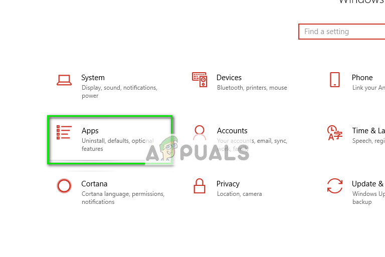 - Press Windows + S, type “settings” in the dialogue box and open the Windows Settings. Once in settings, open the sub-heading of “Apps”.