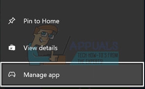 - Press the menu button present on your controller to bring forth the options. Now select “Manage app” from the list of options available.