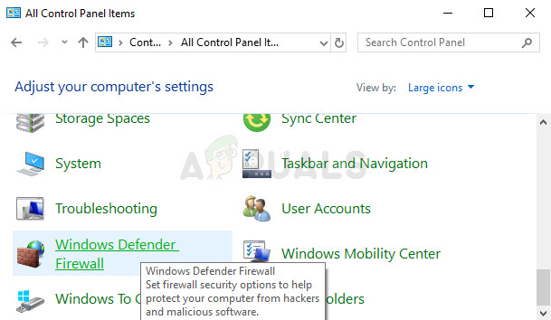 - Change the View by option to Large icons and locate the Windows Firewall option.