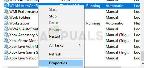 - Navigate back to WLAN AutoConfig properties and click Start.