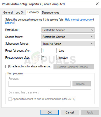 - Next, click on the recovery tab, locate the First failure option and choose Restart the Service. This option makes sure that the service will restart automatically if it fails. Do the same for Second Failure and Subsequent failures.