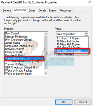 Note: If “100 Mbps Half Duplex” doesn’t work, try using other options available. The Duplex settings might vary computer to computer as each of them have different specifications.