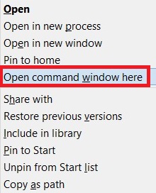- Open the folder with the fast boot files, then Shift + Ctrl + Right Click somewhere in the folder.