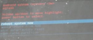 - When you see Recovery Mode displaying in red, press and hold the power button and push the volume up key. Your screen should then shift to the recovery menu.