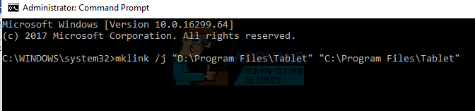 mklink /j “D:\Program Files\Tablet” “C:\Program Files\Tablet”