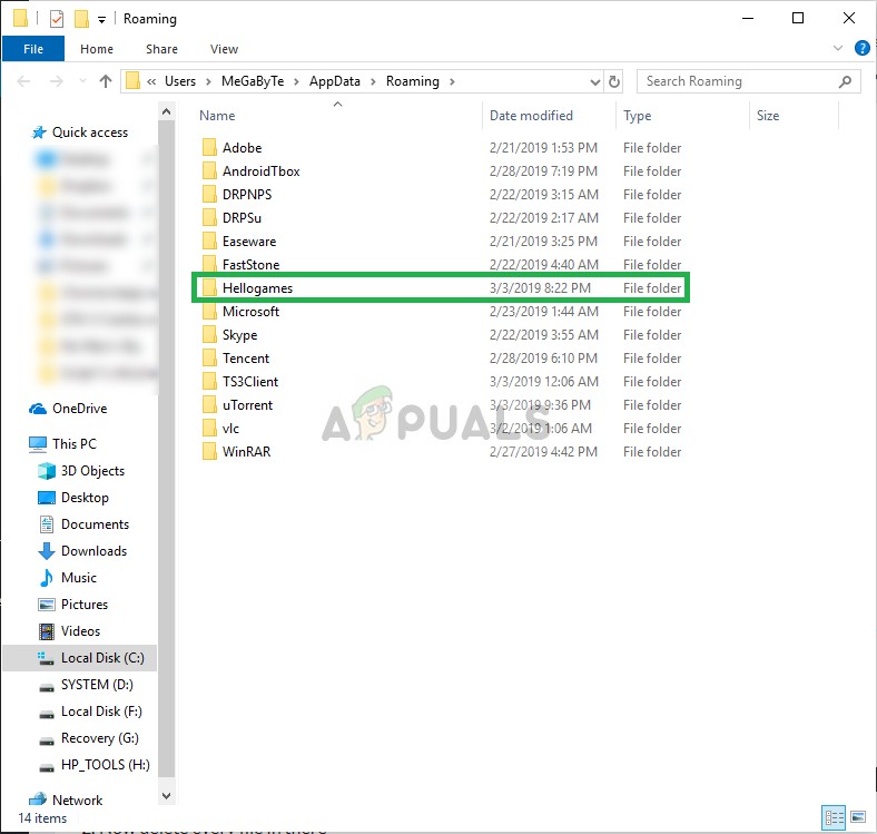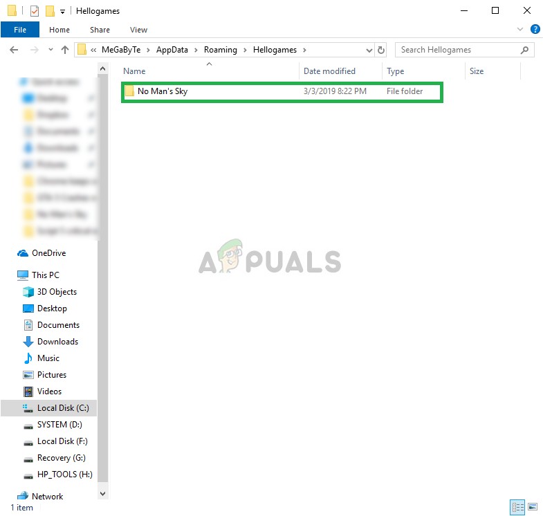 Opening the Hello games folder - Open the “No Man’s Sky” Folder and delete everything in it