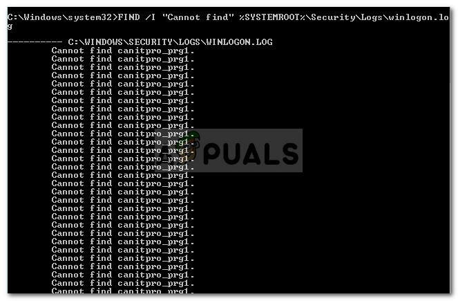 FIND /I "Cannot find" %SYSTEMROOT%\Security\Logs\winlogon.log