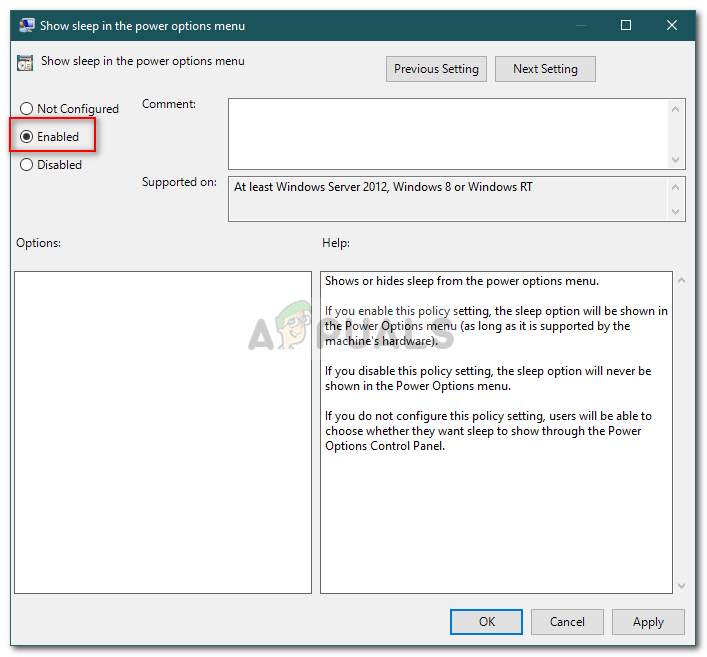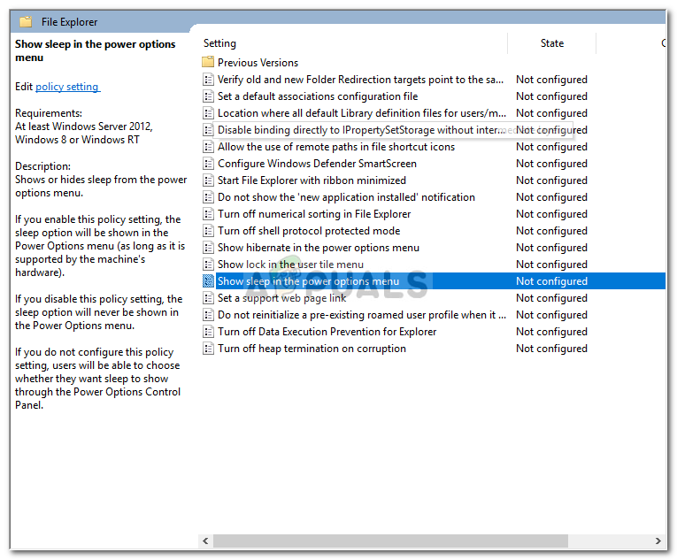 If your Power Menu is missing the Sleep option, this might be due to your system’s power settings, local group policy configuration etc. There have been several reports submitted by users which state that there’s no option for sleep mode in the Power menu. According to some of the reports, the issue occurred after they updated their Windows 10 system while in the meantime, for some, upgrading to Windows 10 happened to be the cause.