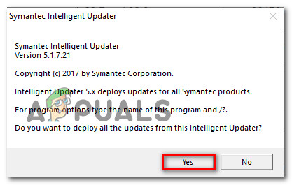 If you tried the methods above to no avail and you’ve made sure that the issue is not caused by Norton’s AutoUpdate servers, you should be able to resolve the issue by using the Intelligent Updater. Several users in a similar situation reported that the issue was resolved indefinitely after they visited the Intelligent Updater downloads page and downloaded the latest definition sets.