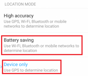 - If the mode is set to High Accuracy either change it to Device Only or Battery Saving.