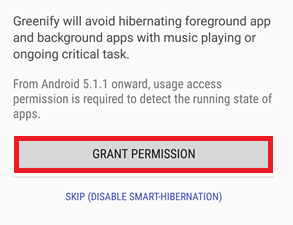 - Now you need to grant Greenify permission to your Usage patterns. Tap on “Grant Permission” and switch the Permit usage access toggle to On.