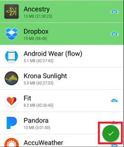 - Go through the whole list of apps and tap on the ones that you’d like to hibernate. Once you’re finished with your selection, tap the floating icon again to close the app analyzer.