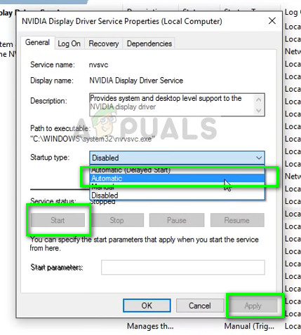- Change the Startup type to Automatic. If the Start button isn’t clickable, press Apply to enable it.