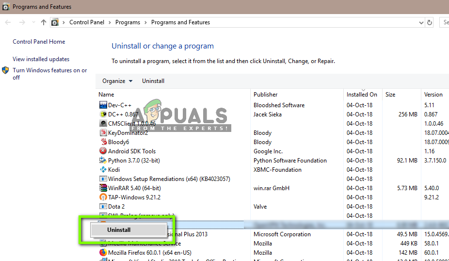 In this solution, we will uninstall the current copy of OBS Studio and after restarting, install the latest version. All user data will be deleted so make sure that you have saved all your work.