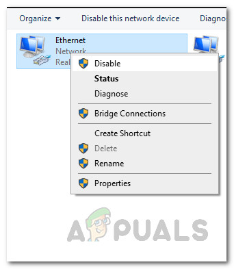 Disabling Ethernet Adapter - Once it has been disabled, right-click on it again and then choose Enable from the drop-down list.