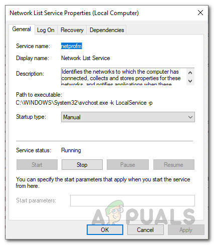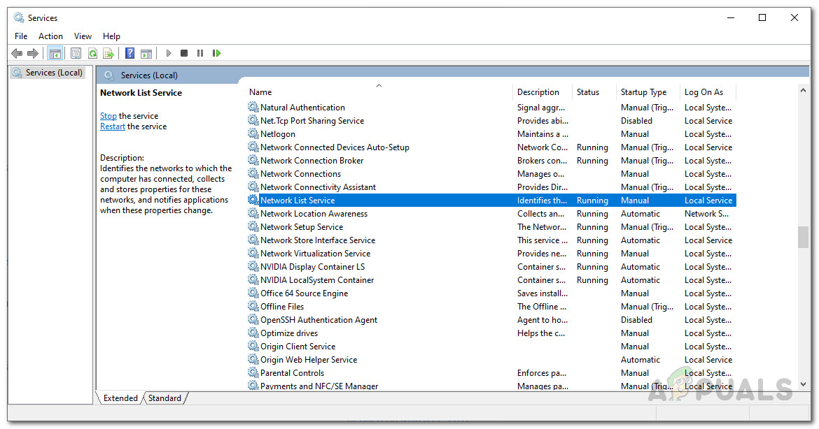 Finally, if the above solutions do not work out for or are not applicable to you, your issue may very likely be caused by two of the network services. Network List service is used to identify the network to which your computer is connected and then if anything changes, it notifies the applications. Network Location Awareness service almost does the same thing. The difference being it collects configuration information for the network. Now, if these services are stopped, the configuration information may not be available to the applications which can cause network connectivity issues such as this one. Therefore, you will have to make sure that the services are running and if they already are, you will have to restart them. Follow the instructions down below to do this: