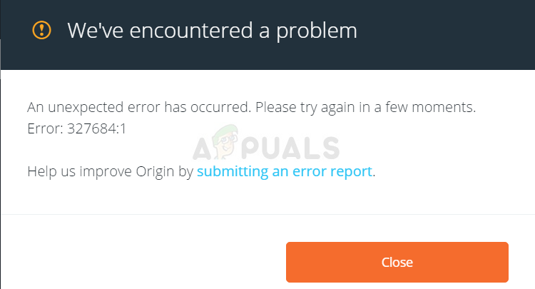 - Make sure you confirm any dialogs which may appear which should prompt you to confirm the choice with admin privileges and Origin should launch with admin privileges from the next startup. Open it by double-clicking its icon and try relaunching the game’s installation process to see if the error 327684:1 still appears.