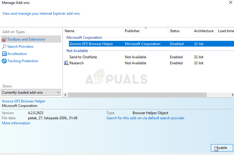 - Under Show, select All add-ons, select the add-on you want to check if it’s causing the error and choose Enable.