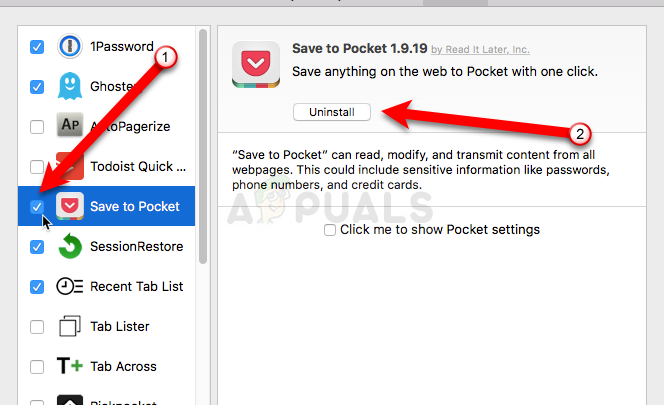 - Remove the check mark next to the “Enable extension” box to disable it but it’s better to Uninstall it by clicking on that option.