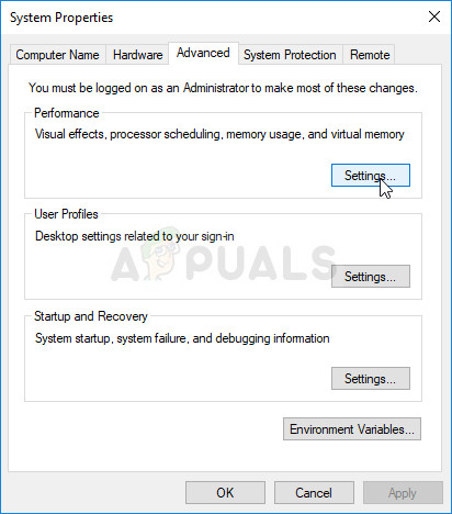 - Under the Performance section, click on Settings and navigate to the Advanced tab of this window.
