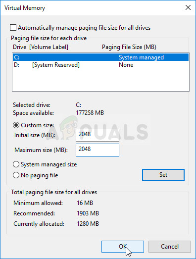 Note that your hard disk’s speed is much slower than RAM’s so increasing the pagefile greatly is not nearly the same as adding new physical memory but it can help and users have confirmed that adding some more physical memory on their PCs helped solve the error code 12.
