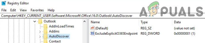 Set ExcludeExplicitO365Endpoint Value to 1 Double-click ExcludeExplicitO365Endpoint and set its value to 1. If AutoDiscover is not available, check other number folders and add ExcludeExplicitO365Endpoint there.