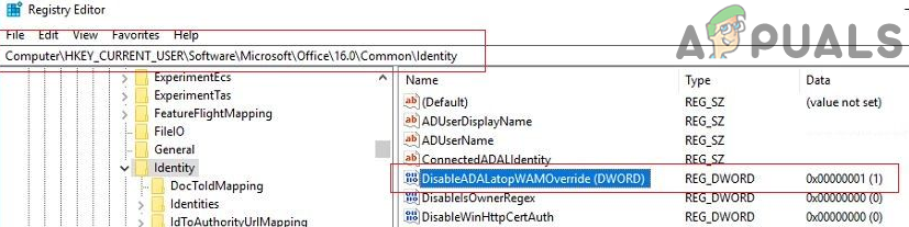- Create another DWORD key, name it DisableADALatopWAMOverride, and set its value to 1.