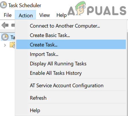 - Open Task Scheduler from the Windows search bar, click the Action menu, and select Create Task.