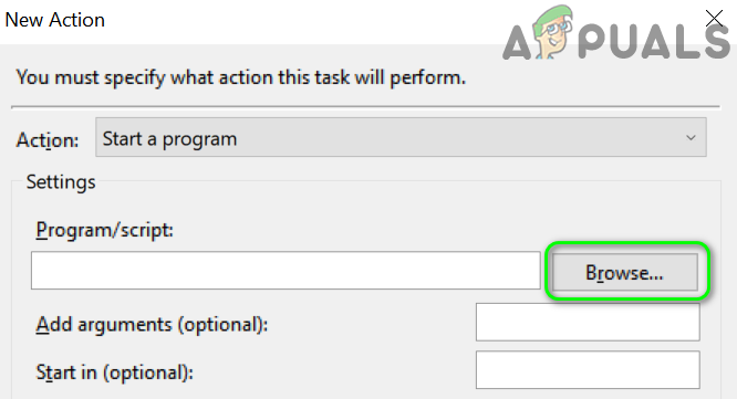 Set the Triggers Parameters - In the Actions tab, click New, browse to select the .cmd file, and click OK.