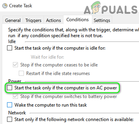 Uncheck the Option of Start the Task Only if the Computer is on AC Power - In the Settings tab, uncheck “Stop the Task if it Runs Longer than” and click OK.