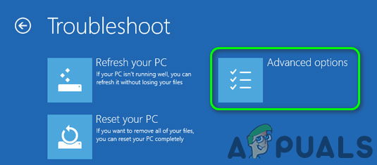 Hold the Shift Key and Restart Your System - Select Troubleshoot and then Advanced Options in the menu shown.