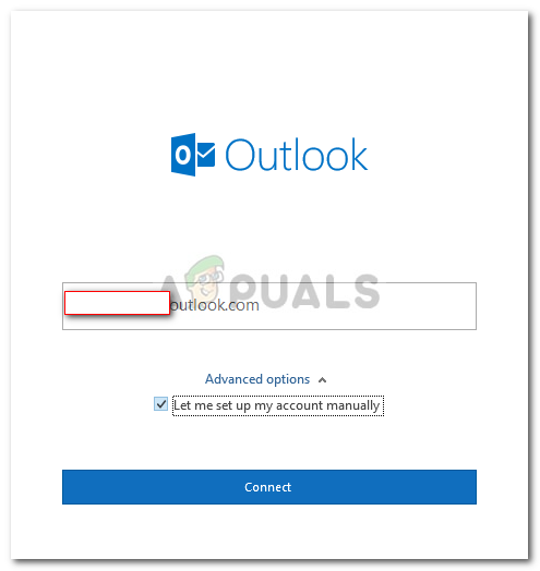 - Make sure the ‘Let me set up my account manually’ is checked, click Connect.
